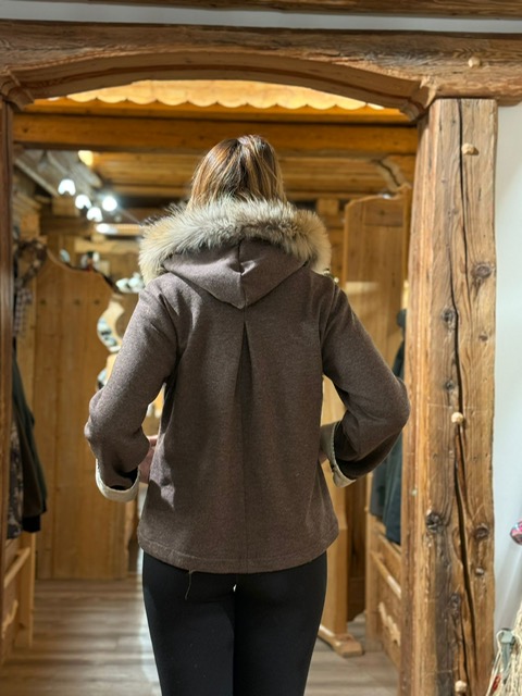 Mantellina realizzata in lana e alpaca con taglio svasato e ampie maniche in taglio over, disponibile con cappuccio molto ampio con e/o senza pelo finnraccoon, due grandi tasche con zip invisibili e con bordature interne rifinite in raso . Capo molto elegante ideale per tutte le stagioni, silenzioso e molto leggero, poco ingombrante che garantisce ottima termicita’ naturale da utilizzare nelle mezze stagioni e invernale. Disponibile nei colori marrone nelle TG S/M e L/XL