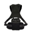 Realizzato con tessuti impermeabili e silenziosi il portabinocolo Alpine Pro è nato per proteggere binocoli e dispositivi elettronici da acqua polvere e detriti vari e nel contempo mantiene il tutto a portata di mano durante la battute di caccia. E’ dotato di varie tasche integrate totalmente imbottite e di un sistema innovativo per l’aggancio di portacartucce e porta termico/telefono che durante l’attivita’ rimangono saldamente agganciate al corpo centrale. Il marsupio principale è di facile accesso con chiusura magnetica e silenziosa studiato per riporre binocoli di varie dimensioni e la custodia dispone di una tasca frontale con zip per piccoli oggetti e7o documenti, due tasche laterali applicate, piu’ ulteriore tasca a rete sul retro. Il sistema di bloccaggio, completamente rimovibile, permette di portare il binocolo in maniera personalizzata, centrato e all’altezza ottimale a seconda di ogni esigenza. L’imbragatura è completamente regolabile e studiata per adattarsi a tutte le taglie, realizzata con taglio ergonomico e rete traspirante leggermente imbottita per garantire un’asciugatura rapida e il massimo comfort. Il peso compresa l’imbragatura è di soli 400 gr Disponibile nei colori STONE FOREST DOLOMIA VERDE KAKI e LODEN verde