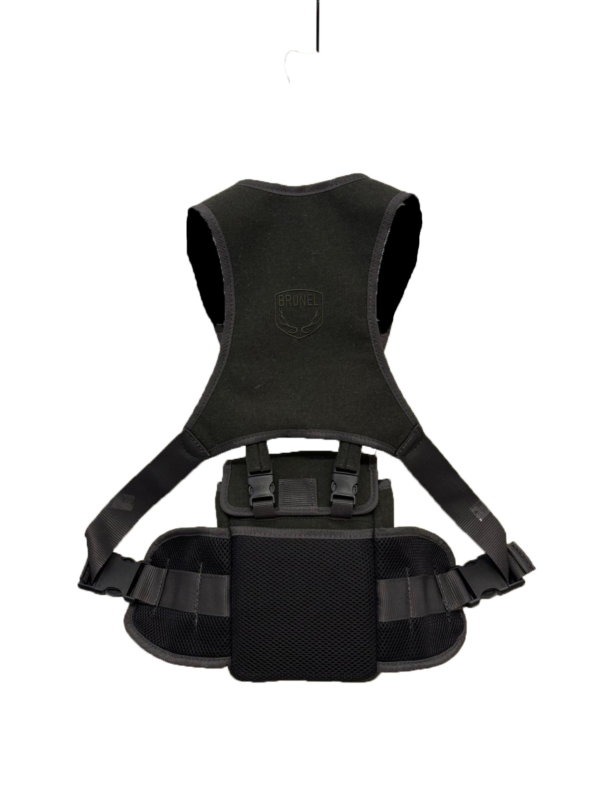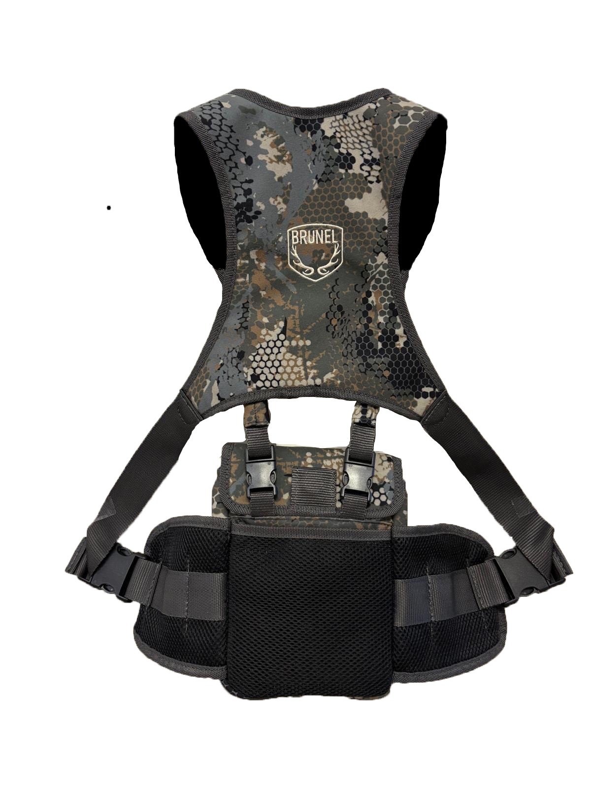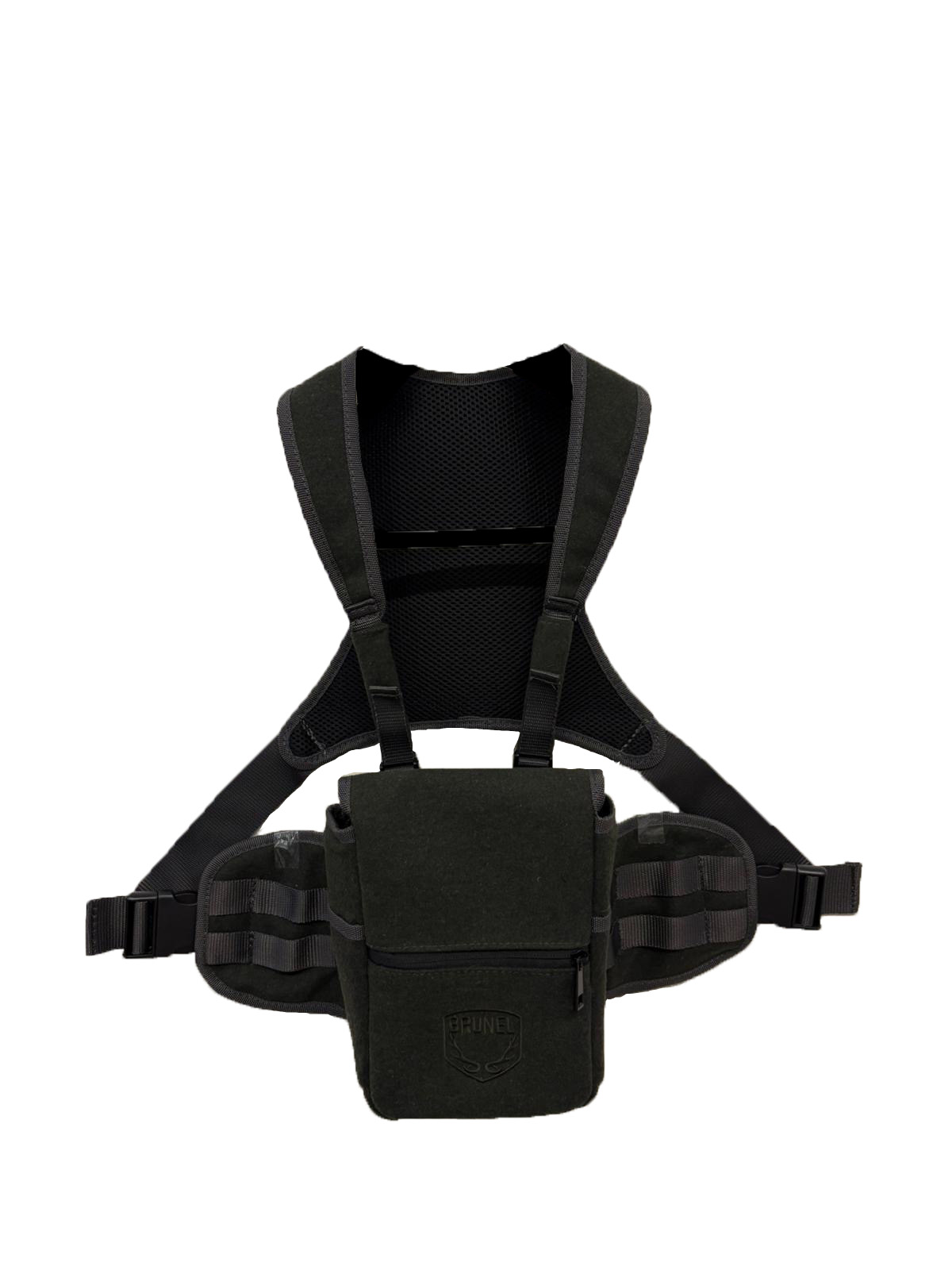 Realizzato con tessuti impermeabili e silenziosi il portabinocolo Alpine Pro è nato per proteggere binocoli e dispositivi elettronici da acqua polvere e detriti vari e nel contempo mantiene il tutto a portata di mano durante la battute di caccia. E’ dotato di varie tasche integrate totalmente imbottite e di un sistema innovativo per l’aggancio di portacartucce e porta termico/telefono che durante l’attivita’ rimangono saldamente agganciate al corpo centrale. Il marsupio principale è di facile accesso con chiusura magnetica e silenziosa studiato per riporre binocoli di varie dimensioni e la custodia dispone di una tasca frontale con zip per piccoli oggetti e7o documenti, due tasche laterali applicate, piu’ ulteriore tasca a rete sul retro. Il sistema di bloccaggio, completamente rimovibile, permette di portare il binocolo in maniera personalizzata, centrato e all’altezza ottimale a seconda di ogni esigenza. L’imbragatura è completamente regolabile e studiata per adattarsi a tutte le taglie, realizzata con taglio ergonomico e rete traspirante leggermente imbottita per garantire un’asciugatura rapida e il massimo comfort. Il peso compresa l’imbragatura è di soli 400 gr Disponibile nei colori STONE FOREST DOLOMIA VERDE KAKI e LODEN verde
